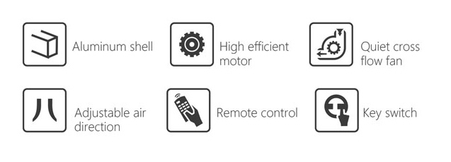 Adopt quiet aluminum alloy wind wheel and scientific airflow design; it has strong and powerful air volume.